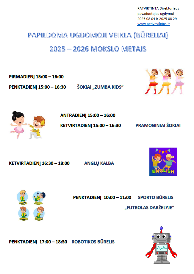 postheadericon Papildoma ugdomoji veikla (būreliai) 2025-2026 m. m.